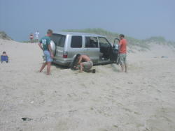 Stuck This is what happens when you don't let the air pressure in the tires down to 13 psi. |